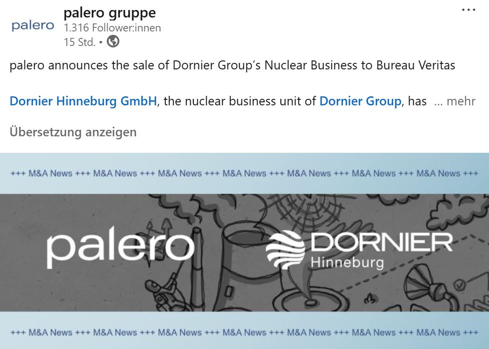 „Seit sechs Jahren arbeite ich nun mit der palero Gruppe als Gesellschafter. Wir haben durch Zukäufe und organisches Wachstum mit der Dornier Group einen starken, globalen Dienstleister im Infrastrukturbereich geschaffen. Unsere Gesellschafter haben uns auf unserem Weg immer unterstützt und waren der starke Partner an unserer Seite. Dafür bin ich sehr dankbar.“